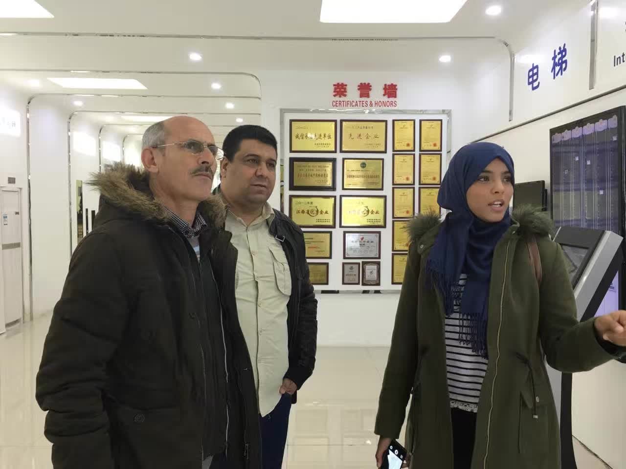 考察期间,公司董事长付桂生热情接待了阿尔及利亚国家质监代表团,并向他们简单介绍了我司产品的生产和销售情况,公司销售总监全程陪同参观了公司展厅、生产现场和试验塔以及在本地安装使用项目的运行情况。同时全程观摩了上海交大老师在我司进行的几项电梯和扶梯的型式试验工作。