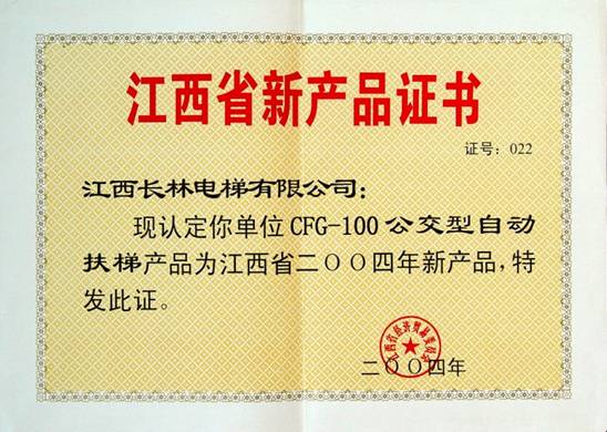 2004年公交型自动扶梯新产品证书